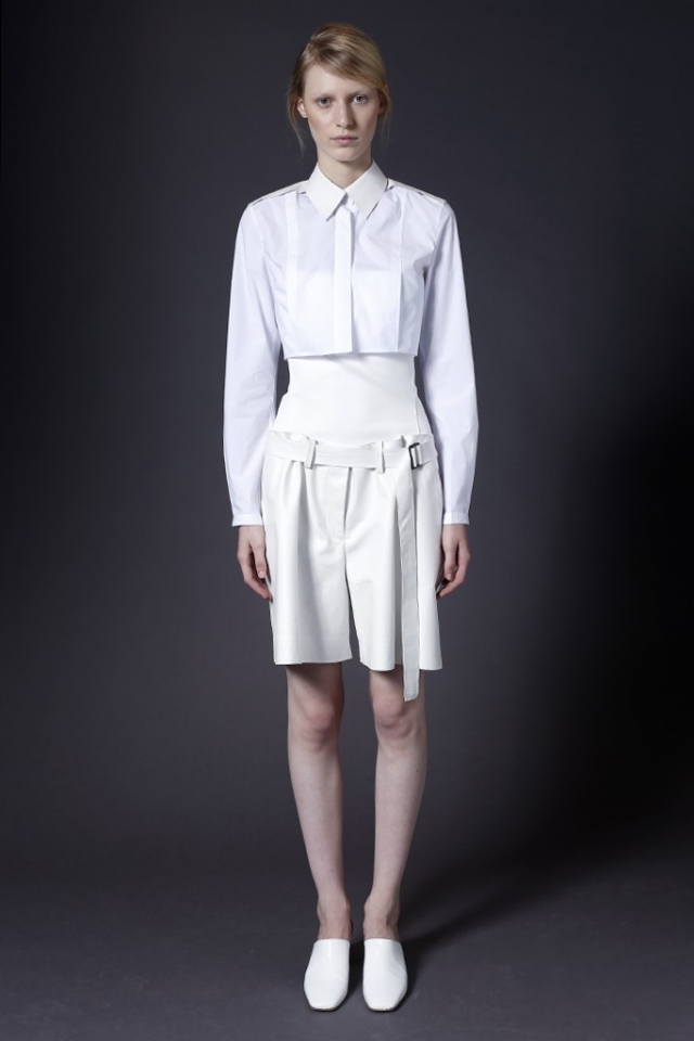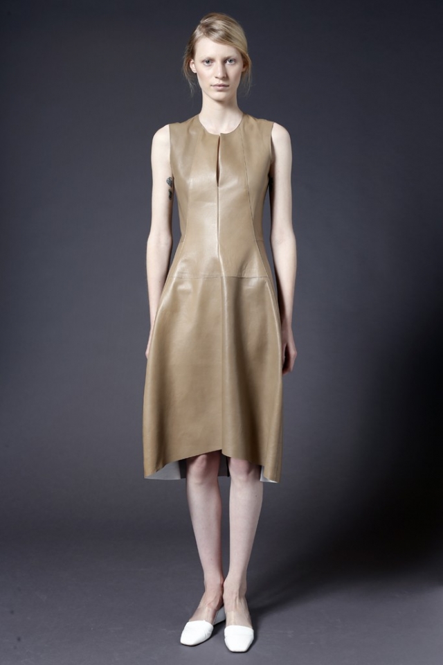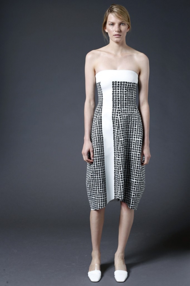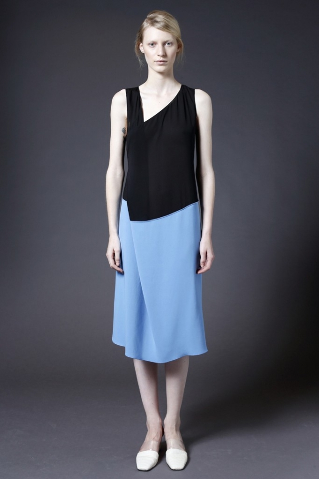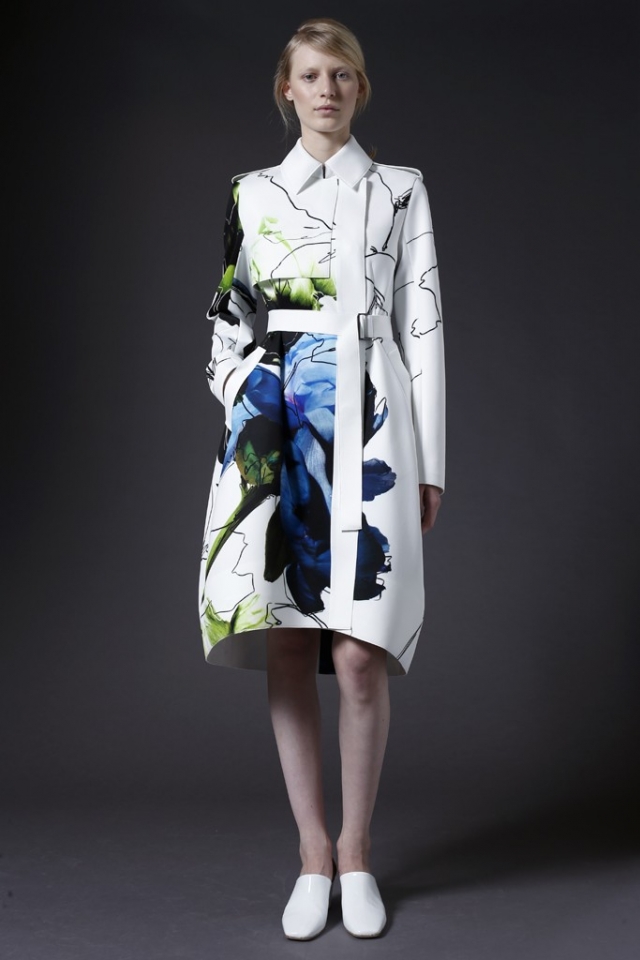 Геометричность удалось привнести благодаря драпировкам, асимметричным вырезам и подолам платьев и юбок. И все же в коллекции нет ни одной скульптурно очерченной формы, все они довольно простые, расслабленные. Ощущение легкости коллекции появляется при одном только взгляде на обувь — закрытые шлепанцы на танкетке, напоминающие о Востоке. Ими дизайнер дополнил все без исключения образы коллекции, включая белое пальто-колокол, вручную расписанное цветочным принтом.