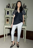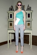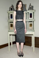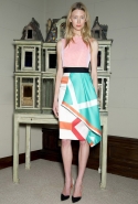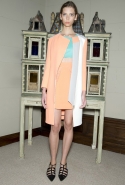 Краски Ролан Муре выбрал не совсем мондриановские: здесь не найти ни яркого ультрамарина (поправка: замечен только однажды), ни красного, ни желтого, разве что контрастное сочетание черного и белого — но без этой парочки не представишь ни одну коллекцию. Основой круиза Roland Mouret стали яркие и пастельные оттенки бирюзового, розового и кораллового в сочетании с черной, серой и белой классикой. Из блоков этих цветов и ткани в горошек дизайнер и собрал свою межсезонную коллекцию: платья, юбки-карандаши, брючные костюмы и пару очень эффектных комбинезонов.