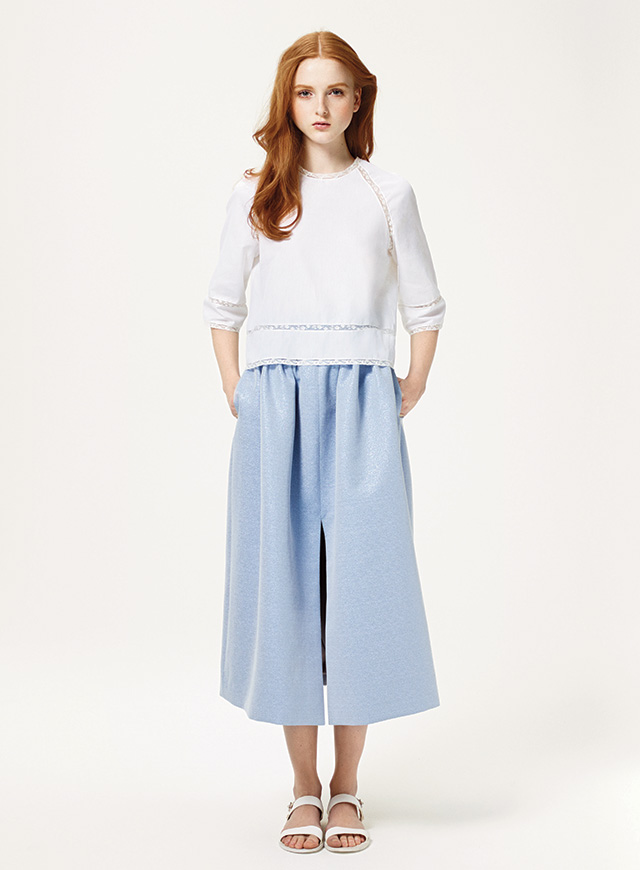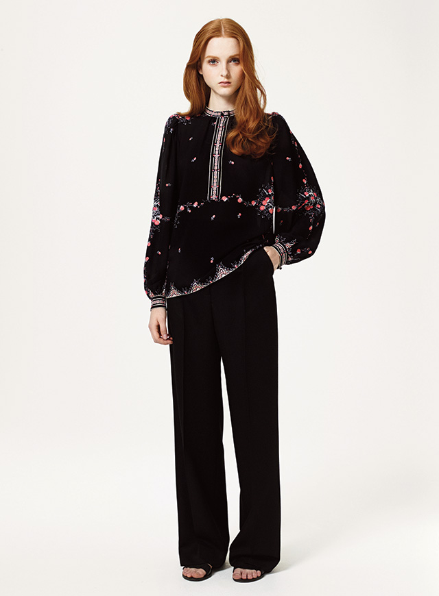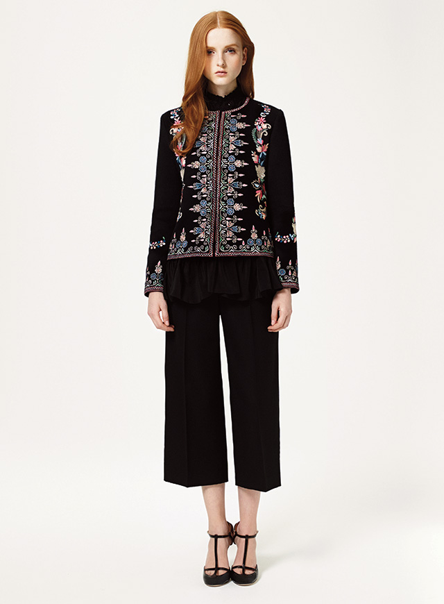 Ольга исследует старый русский стиль с особой нежностью, избегая броских и очевидных приемов и излишней театральности. Вместо ярких народных росписей и условных павлопосадских платков она берет старинные вышивки и простые рубахи, смешивая старинное наследие руссконародной культуры с вполне западными 70-ми. Расшитые цветами сорочки превращаются в летящие блузы, женственные юбки-миди и романтичные платья соседствуют с укороченными брюками-сигаретами, а расписные, немного гусарские жакеты — с брюками широкими и летящими.