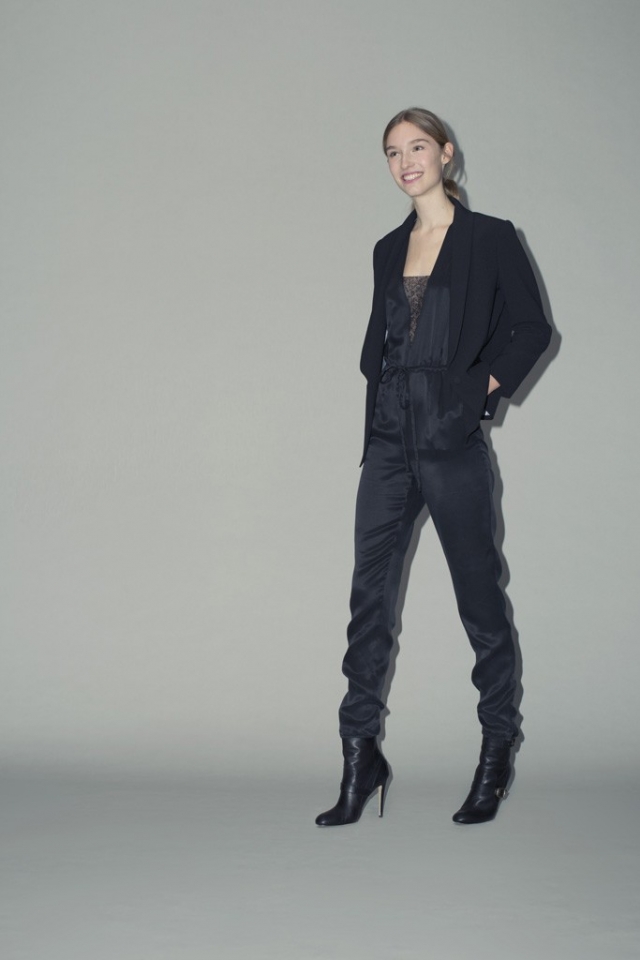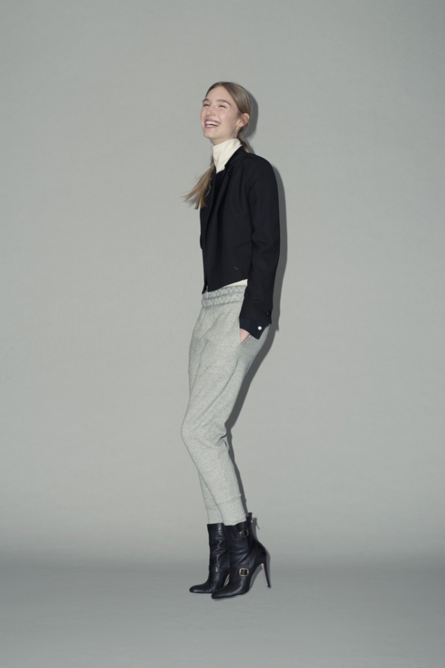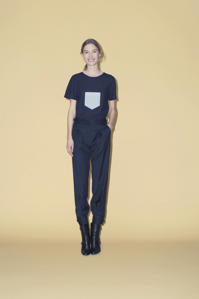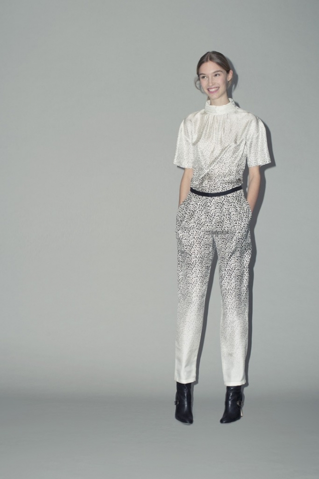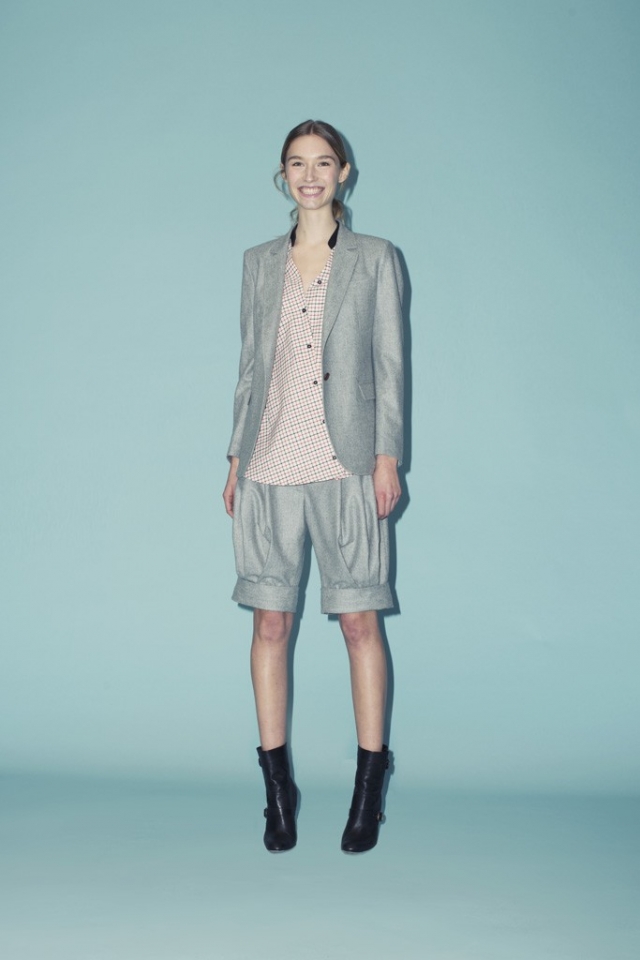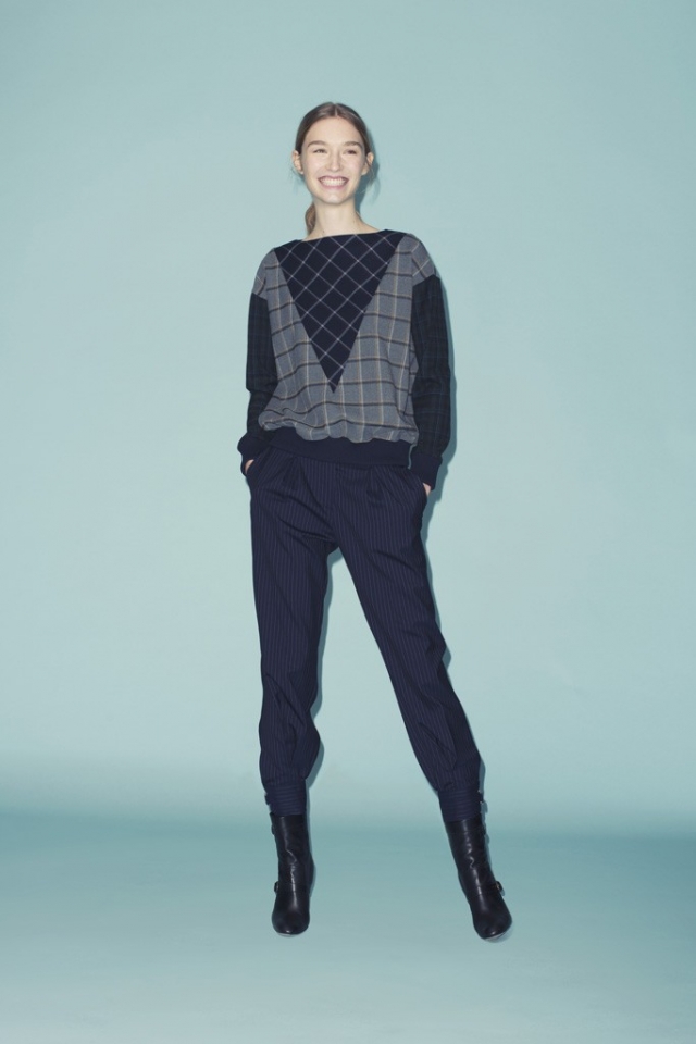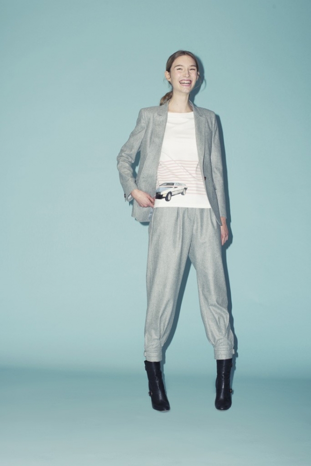 Это вещи для городской девчонки, вчерашней (а может, и сегодняшней) школьницы или студентки — не зря среди источников вдохновения Стернберг называет фильм "Последние дни диско" про двух подруг Алису и Шарлотту, недавно окончивших колледж и начинающих взрослую жизнь, и не когда-нибудь, а во времена диско, пусть уже и на его закате. Но для молодых людей диско не заканчивается никогда — ровно до тех пор, пока они окончательно не повзрослеют. Вот тогда модель в лукбуке перестанет весело хохотать в камеру, а упрет руки в бока и замрет в очередной заученной позе. Пока же она смеется, прячет руки в карманах уютных вельветовых брюк, висящих мешком на талии из-за мужского кроя. Примеряет клетчатые юбки, простенькие светлые платьица с аккуратными воротничками — только не белыми кружевными, а из черной кожи. Носит лоферы с носками-гольфами, как девочки из романтических школьных фильмов.