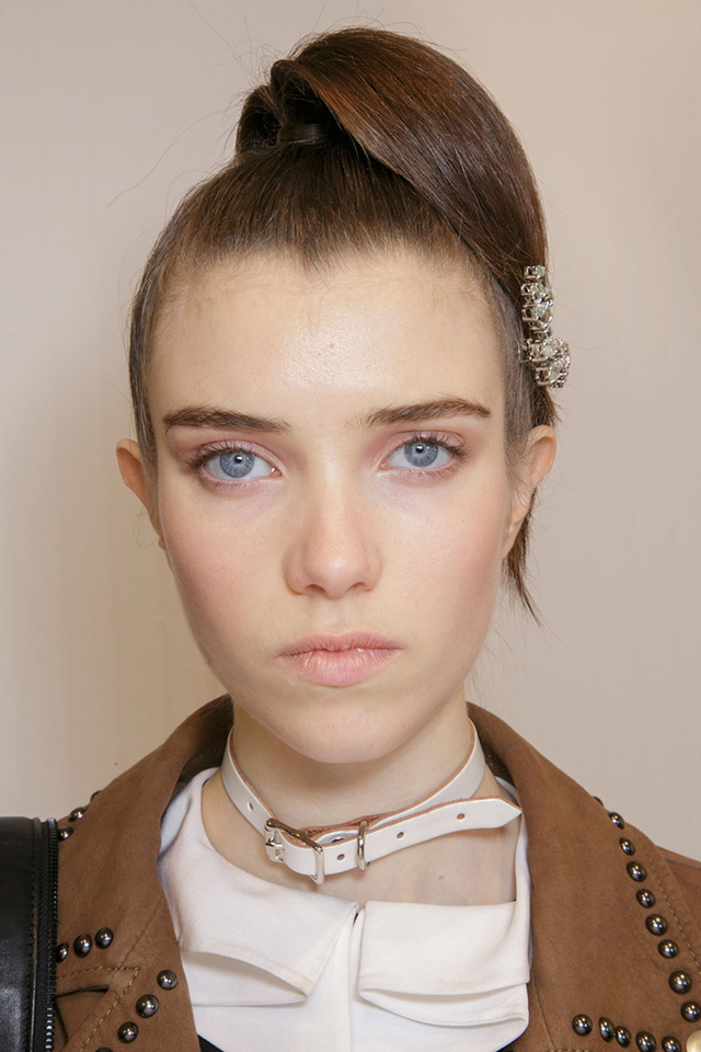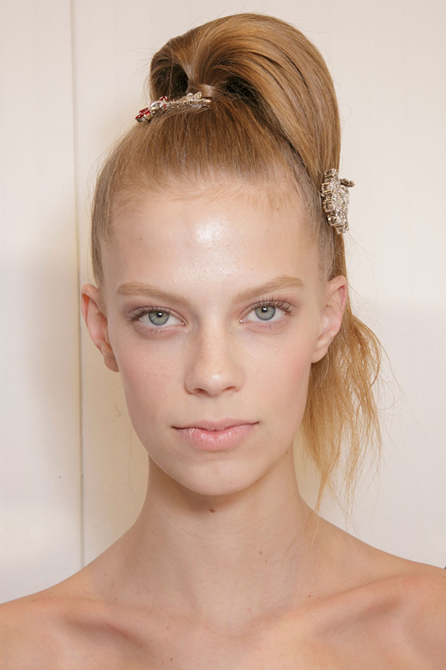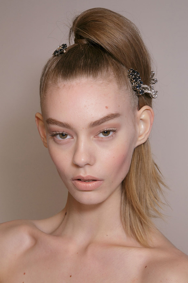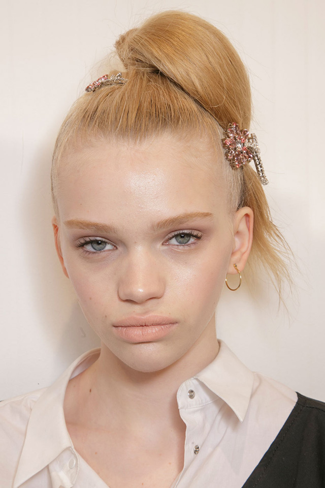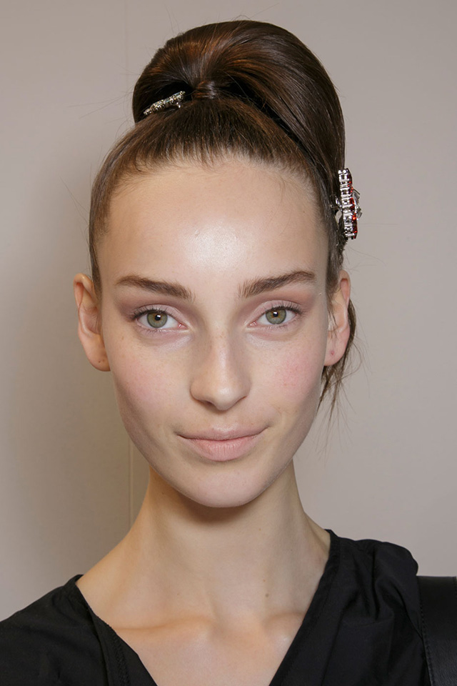 Столь же нежным был и макияж показа, за который отвечала Пэт МакГрат. Визажист рассказала, что главными словами брифа стали «новая элегантности и новая красота». Для этого образ Пэт создала идеальную, но очень естественную кожу, используя лишь увлажняющий крем и консилер, затем нанесла на веки полупрозрачные красно-коричневые тени, а поверх — тонкую линию бежевой подводки и накрасила ресницы одним взмахом коричневой туши. Последняя деталь — натуральный ярко-розовый румянец, который Пэт нанесла широким мазком на скулы моделей.