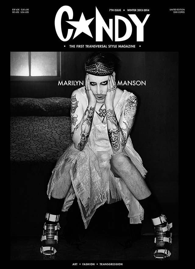Candy Magazine — первый в мире трансгендерный журнал, и знаменитости, появляющиеся на его обложках, всегда снимаются в образах драг-див. Поэтому переодеться пришлось и Мэнсону с Гагой. На первой обложке татуированный Мэрилин Мэнсон сидит на кровати в платье и сандалиях-гладиаторах, а на второй у той же кровати стоит Леди Гага. На ней только шуба и накладные усы, как у Сальвадора Дали — больше ничего.