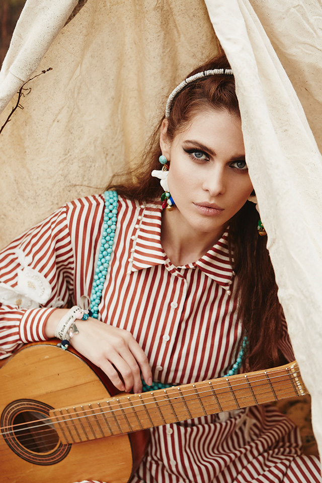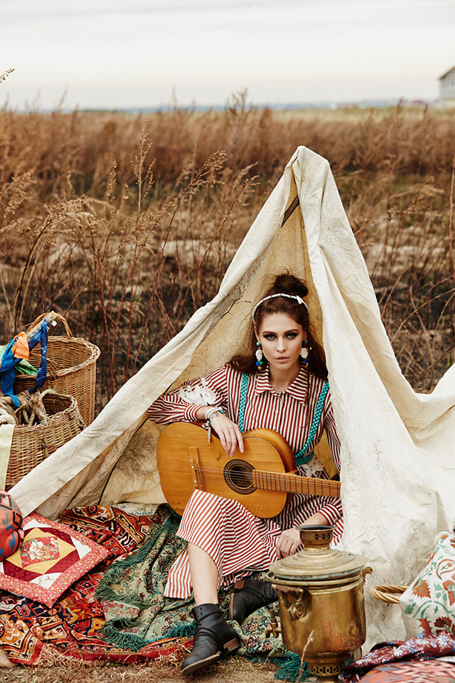 Российский дизайнер Евгения Линович представила лукбук новой коллекции Masterpeace, которая получила название Gypsy Soul. В линейке украшений и аксессуаров дизайнер вдохновляется тематикой широкой и таинственной цыганской души. В коллекцию вошли крупные бусы, браслеты и серьги из полудрагоценных камней. Линейку аксессуаров в этот раз дополнили капсулой одежды, в которую вошли длинные сарафаны, кафтаны и туники, сшитые из натурального льна.