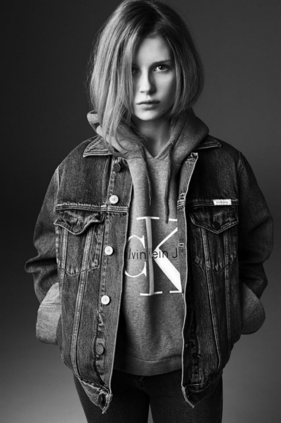 В капсулу вошли переиздания девяти классических моделей марки из линий джинсов и нижнего белья: футболок, свитшотов, джинсов с низкой и высокой талией, джинсовых рубашек и шорт. По словам Кевина Карригана, креативного директора обеих линеек, эта капсульная коллекция — ностальгия по 90-м, стиль которых вновь стал актуальным в наши дни. "Сейчас, кажется, идеальное время для того, чтобы перевыпустить наши главные хиты, представив их новому поколению", — рассказал он журналистам портала WWD. Новому поколению — новая Мосс, теперь уже не застывшая в ранге "супер" Кейт, а ее младшая сестренка Лотти.