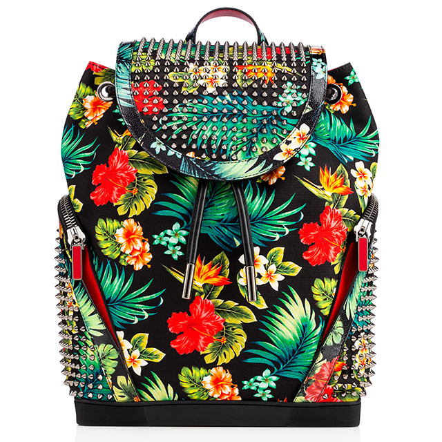 Для гавайской коллекции парижская студия бренда разработала яркий тропический принт цветущего гибискуса, который можно встретить на моделях обуви и аксессуаров из гранулированной кожи или льняной ткани (в линейке есть и комбо) на белом или черном фоне. Так, эксклюзивный рисунок можно встретить и на модели Houla, и на каблуках Olala. Но это не все — цветочный рисунок можно встретить и на дамских сумках Triloubi, и на мужских Trictrac (правда от традиционных лабутеновских шипов здесь никуда не деться), на кедах Ha Why Luna и Beach Club (в этой модели Christian Louboutin может еще похвалиться и лазерной отделкой 3D, а также вкраплением жемчужин и кристаллов, выполненным вручную) и эспадрильях из дышащей ткани с вышитыми Mom and Dad. Плюс небольшим комплиментом к коллекции бренд выпустил два лимитированных набора лаков для ногтей (по три оттенка из коллекций Pops и Noirs) в коробочке с цветочным узором.