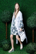 Сказочница Алена Ахмадуллина впервые взялась не только за карандаш для эскизов, но и за перо: сказку для новой коллекции она написала сама, решив не ворошить вновь сборники фольклора народов мира. Получилась волшебная история о Царевне Несмеяне, которая, пусть и осталась без жениха-принца, научилась радоваться жизни и видеть красоту вокруг себя в самых обычных вещах. И не ждать букетов из миллиона алых роз, а гулять по полям, заросшим самыми простыми цветами: одуванчиками и геранью, маками и гвоздиками, даже чертополохом, который любой дачник назовет самым коварным сорняком. Каждое из этих растений стало героем отдельной "главы" и в самой коллекции: пять блоков посвящены пяти разным цветкам.