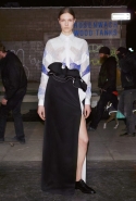 Особое внимание предлагаем обратить на аксессуары — обувь и сумки, которые в сезоне pre-fall у Givenchy получились отличными как в мужской, так и в женской коллекции. Наши фавориты — сандалии на ребристой белой подошве, глянцевитые ботинки, напоминающие резиновые калоши и большие черно-белые клатчи-папки.