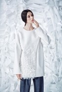 Коллекция Ruban стала одной из самых ярких на прошедших московских неделях моды: на этот раз сестры-дизайнеры решили сыграть на контрасте простых повседневных форм, выполненных из базовых материалов, и богатой, почти кутюрной отделки. Поэтому основной единицей показа стала мужская сорочка в полоску, которая на глазах у зрительниц то удлинялась, то укорачивалась, то утягивалась, то обрастала невесомыми тканевыми лепестками. Подчеркивает этот дуализм осенне-зимней коллекции и лукбук, который команда российской марки представила сегодня. Фон, созданный специально для съемки декоратором Мариной Спириной, как и отделка на снимаемых вещах, выглядит почти одушевленным: при малейшем дуновении ветра лепестки ткани оживают, словно стайка бабочек, приземлившихся лишь на секунду и готовых вот-вот вспорхнуть в воздух.