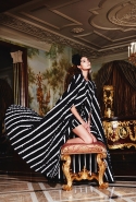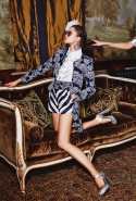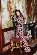 Идея объединить в одной коллекции японские кимоно и выраженную, кричащую сексуальность 80-х кажется не слишком очевидной: японцы не зря известны как нация, не терпящая публичного выражения эмоций. У Олега Овсиева все, однако, получилось очень органично. Почти кислотные розовый и зеленый в сочетании с графины ми черно-белыми сочетаниями, ядовитые цветы на платьях, скроенных по образу и подобию японских кимоно — все ярко и броско, как любили в блистательных 80-х.
