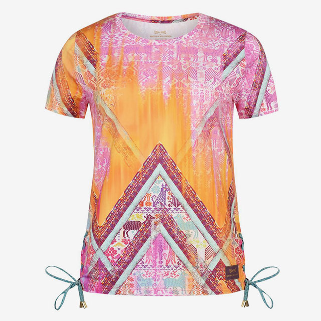 Девушки в нарядных красочных юбках и платьях на фотографиях с презентации этой капсулы — как раз клиентки Matthew Williamson. Потому что именно так обычно и выглядят главные вещи британца. Но для коллаборации со спортивным брендом USA Pro дизайнер переключился на совершенно другие вещи и сделал коллекцию для занятий спортом и поклонников йоги. В нее вошли легинсы, кроп-топы и просто майки, олимпийки и шорты. Главными героями стали не силуэты, максимально типичные для любой спортивной коллекции, а сложные принты. В них, по словам самого Уильямсона, есть все звенья ДНК его именного дома: «природа, экзотические путешествия, ручные техники».