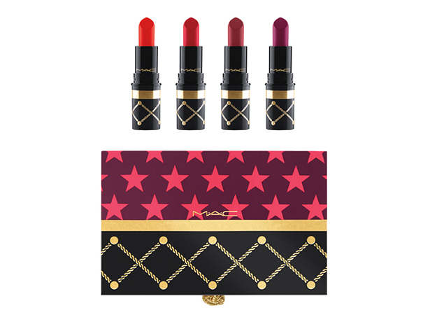 Рождественская коллекция M.A.C получилась довольно объемной: помады, компактные тени для век и палетки, карандаши для глаз, румяна, концентрированные пигменты, хайлайтеры, тинты, лаки, блески, кисти. Основной цвет — розовый. Он представлен в множестве оттенков, от нежных зефирных до насыщенных, почти красных.