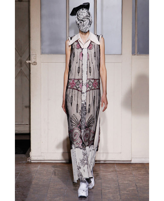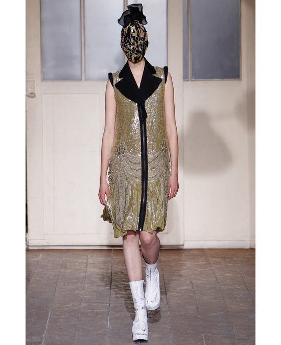 Когда дело касается концептуального подхода к созданию коллекций, важно не столько "что", столько "как". Показанные вначале блейзеры без рукавов из ткани, словно бы раскрашенной вручную, стали лишь преамбулой к разработке прямого силуэта, характерного для моды 1920-х. Многие из моделей выглядели как перекроенные и перешитые подлинные платья и туники десятилетия джаза и чарльстона, в которые случайно "попали" фрагменты современной одежды. Использование широкой вертикальной молнии придало некоторым коротким платьям сходство с верхней одеждой. Кое-где вышивки бисером имитировали спонтанные мазки краски. Роскошное, расшитое темно-красным бисером платье в ориентальном стиле с завышенной талией и ниспадающими складками, декорированное традиционным китайским орнаментом, можно было бы выдать за шедевр самого Поля Пуаре — его принадлежность к современности выдавала лишь верхняя часть с откровенно спортивным воротником на молнии.