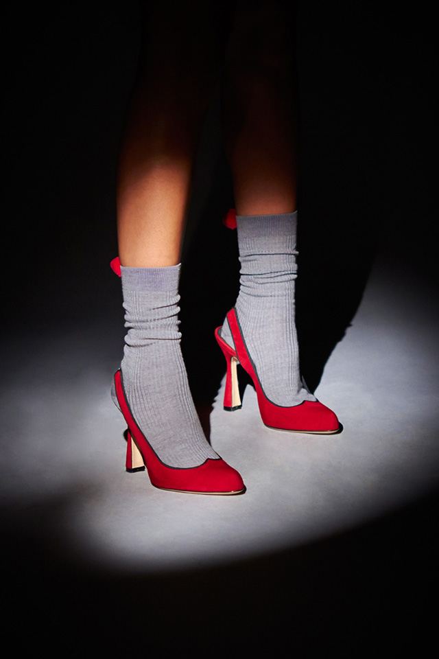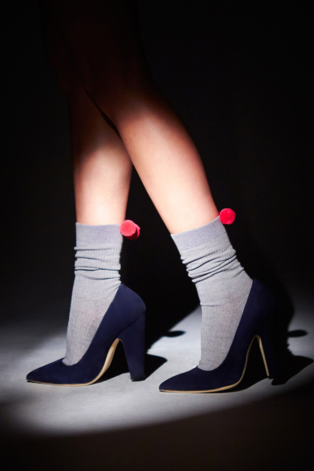 «Он хотел помпоны, он хотел горошек — и теперь мы все будем это носить, — говорит Кристина Бланик, описывая коллекцию носков и ссылаясь на своего знаменитого дядю Маноло. — Мы хотели сделать нечто, что не являлось бы обувью и было бы смешным. И да, это все о розовом помпоне».