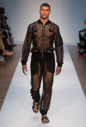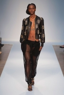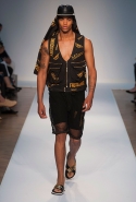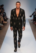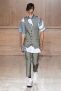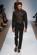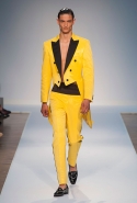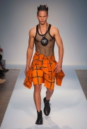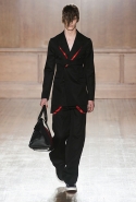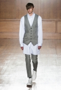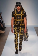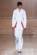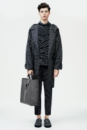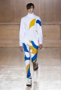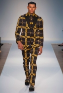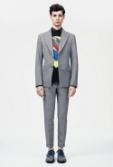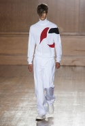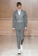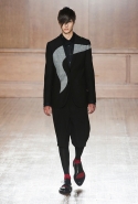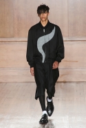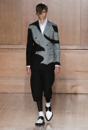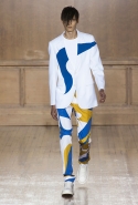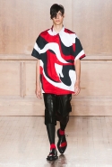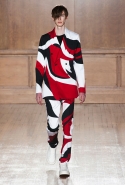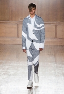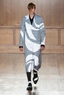 В своей мужской коллекции Кристофер Кейн, по традиции, продолжает тему, начатую еще в феврале в рамках лондонской недели моды показом женской, — его платья, похожие на вырвавшиеся из виртуальной реальности 3D модели, просто так забыть не получится. Лепестки ткани, колышущиеся при каждом движении, как перелистывающиеся сами собой страницы оставленной на ветру книги, дизайнер представил и в мужской версии. Но, конечно, в стилистике более мужественной — не объемными шифоновыми вставками, а всего лишь в виде геометричных принтов в духе оп-арта. Загнутые уголки книг, переплетающиеся в темном виртуальном пространстве прямые — единственным ответом на вопрос о том, заменят ли электронные книги бумажные, Кейн явно считает компромисс.