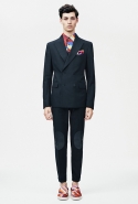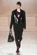 Если предыдущая мужская коллекция Alexander McQueen была готической, в духе режиссера-однофамильца Сары Бертон, то новая весенне-летняя — это уже совершенно другая, ничуть не похожая на нее история. Цветные волны на костюмах напоминают фигуры с коллажей Анри Матисса, выставленных сейчас в лондонском Tate Modern, а контрастные атласные вставки-дуги — разрисованные лица исполнителей японского театра кабуки. Яркие костюмы с удлиненными рубашками и пиджаками, плащами, похожими на платья, огромными ботинками с цветными носками и высокими гетрами — вряд ли эту одежду поймут и оценят многие, но когда это беспокоило дома масштабов Alexander McQueen?