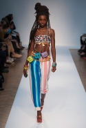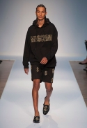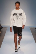 Главной забавой Джереми Скотта снова становится игра с логотипами: от Coca-Cola до Louis Vuitton. А из многочисленных надписей Moschino он и вовсе делает клетку наподобие знаменитого узора Burberry.