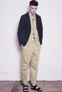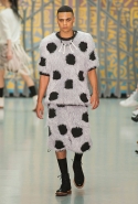 Эта весенне-летняя коллекция стала всего лишь второй в истории мужской линии Joseph, она создана все тем же Марком Томасом. Если в первый раз он обратился к культуре скинхэдов и модов, сняв к тому же весьма убедительный стилистически лукбук, то на этот раз настроение у презентации куда более дружелюбное. Герои Joseph этой весной скорее не мужья, но мальчики, и их стиляжные подвернутые брючки, рубашки в крупную клетку, сандалии, чуть взъерошенные волосы и даже татуировки на руках (довольно, впрочем, безобидные розочки) это только еще раз подтверждают, потому что выглядят по-мальчишески трогательно. Что уж говорить об оранжево-персиковых спортивных костюмах, в которых любой мужчина хотя бы чуть брутальной внешности с коротко остриженной головой смотрелся бы как минимум странно.