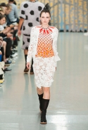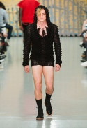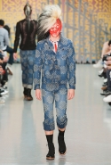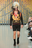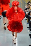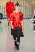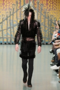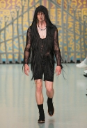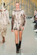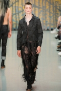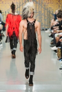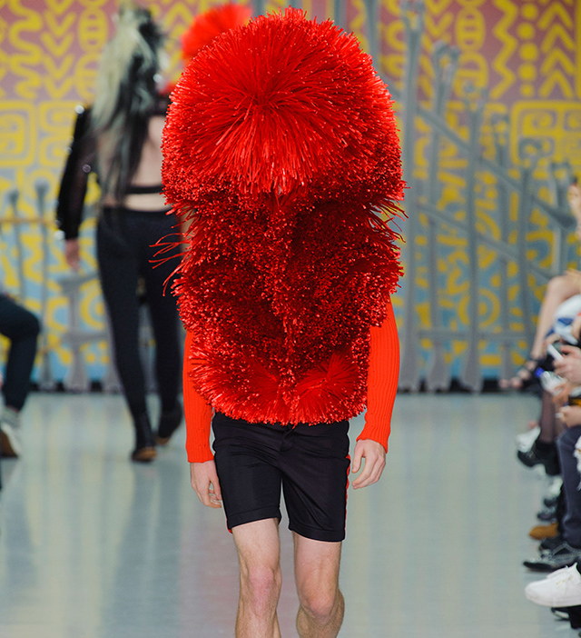 Тройка британских дизайнеров, объединившихся под названием Sibling, — а именно Козетт МакКрири, Джо Бейтс и Сид Брайан — никогда не переступают грань того, что принято называть "нормальным". Просто потому, что они уже давным-давно далеко за ней, хотя и чуть ближе к реальности, чем Том Браун с его слоновьими головами на плечах моделей. Вдохновением для новой весенне-летней коллекции послужила один снимок из фотокниги Дерека Риджерса 78-87 London Youth — портрет девушки с огромной черной гривой. Так что и волос, и панка на подиуме было много: и маски с меховыми ирокезами, и аппликации с длинным ворсом, и длинные седые пряди, вплетенные в сетчатые майки, и, конечно, ярко-красная бахрома в последних выходах.