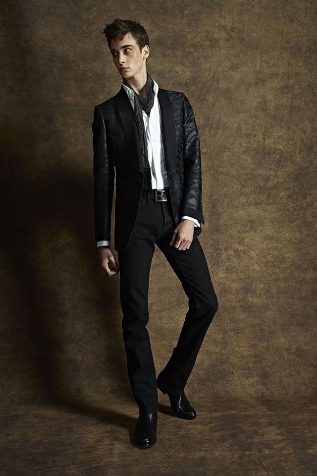 Наигравшись с ярко-розовыми и ультрамариновыми костюмами прошлой весной и отдохнув от обилия этих красок осенью, сделав основным цветом сезона черный, Том Форд снова решил двинуться к золотой середине. Цвета совершенно будничные и привычные: от того же черного до оттенков серого и коричневого. Сам набор тоже вполне традиционно повседневен: джинсы, кожанки, пара пиджаков для вечеринок, белые футболки, замшевые ковбойские куртки — в этой истории определенно есть немного от классических историй про американский Запад, но не "дикий-дикий", а вполне цивилизованный.