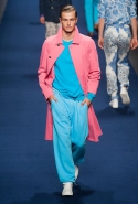 Кроме физического присутствия напоминают об их визите уже после прощания брошенные улики: принты в виде оброненных на бегу розовых перьев, кораллово-розовый "цвет фламинго" и просто розовый, оставшиеся от гостей нам на память. Единственный альтернативный вариант — голубой костюм, который в розовом царстве весны-лета Marc Jacobs Menswear выглядит чужаком. Или же полоска, всегда остающаяся беспроигрышным вариантом. Такие вещи явно не способствуют повышению рабочего духа, но что вообще способно его повысить, когда на дворе лето?