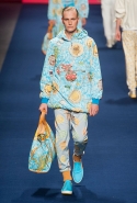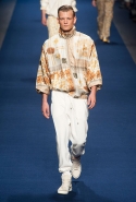 С тем, что пастельные цвета станут следующей весной неотъемлемой частью мужского гардероба, смириться многим будет уже непросто. Но Алессандро Дель Аква идет еще дальше, добавляя в гардероб мужчины №21 узоры из цветочных букетов, обычно применяемые в женской одежде, звериные принты и даже кружево. С ними, впрочем, соседствуют вполне традиционные силуэты и другие, более простые принты вроде шахматной мелкой клетки — только вместо черных квадратов дизайнер на этот раз рекомендует задуматься о, например, светло-желтых.