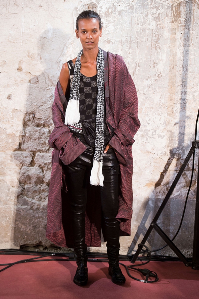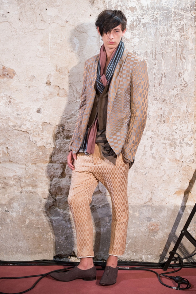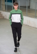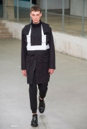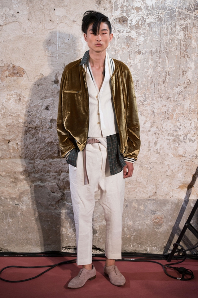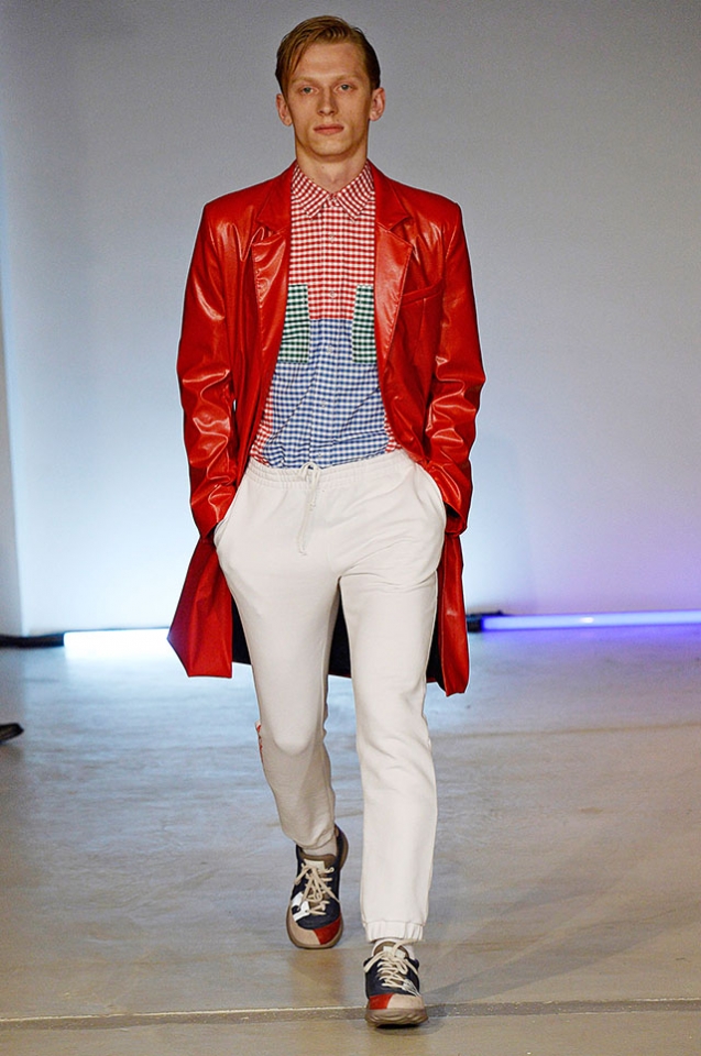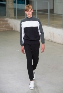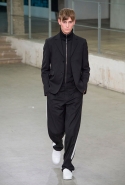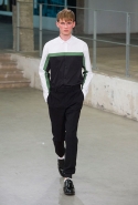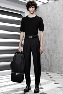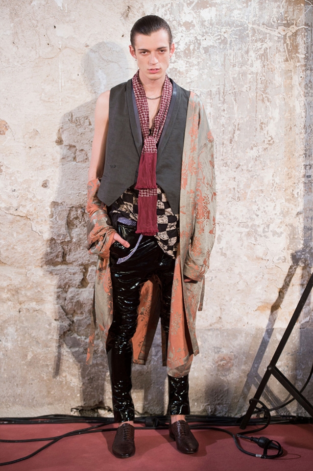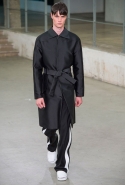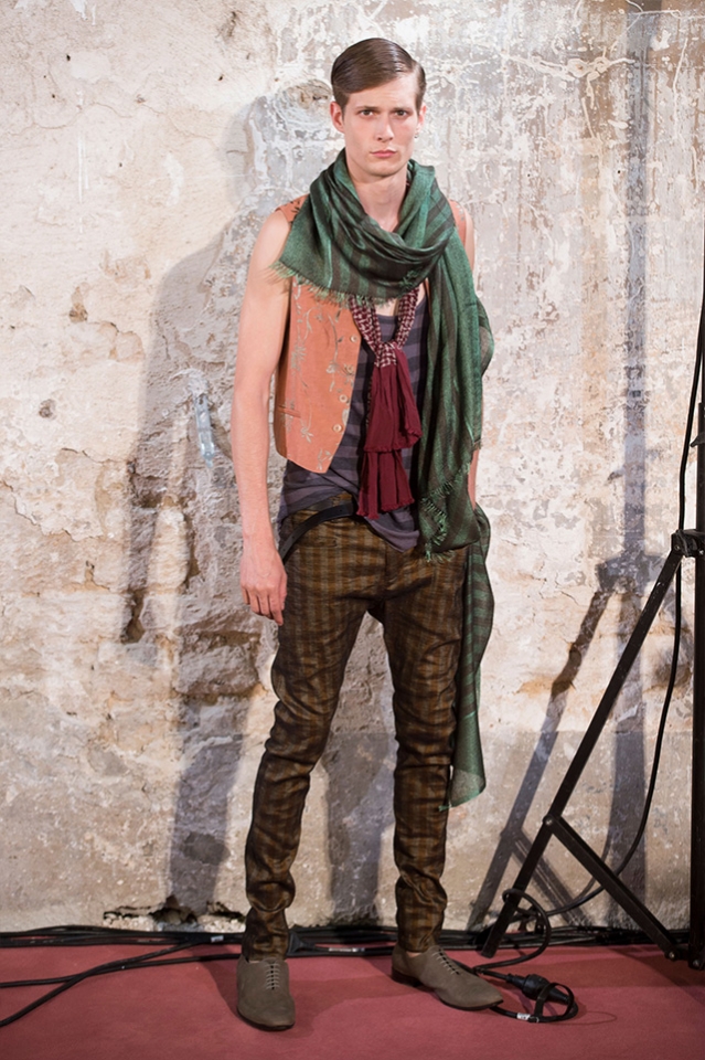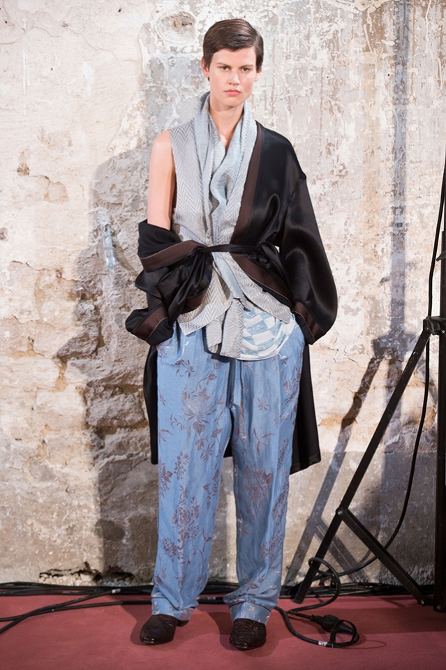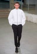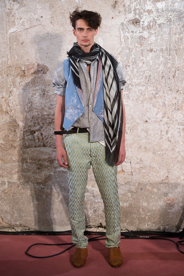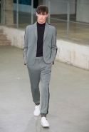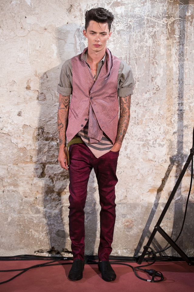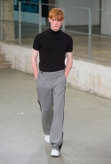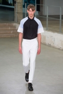 Небольшая коллекция, которую наравне с мужчинами-моделями представляли Саския де Брау и Лия Кебеде, стала идеальным воплощением стиля творческой богемы времен молодости Патти Смит и Роберта Мэпплторпа. Некоторые герои коллекции будто только что встали с постели — или матраса на полу в мастерской, который успешно ее заменяет, — накинув на пижаму первое, что попалось под руку. Другие похожи на рок-н-ролльщиков со стажем, которые никогда не изменяют разве что узким кожаным брюкам, а в личной жизни руководствуются другими правилами. Дизайнер смело смешивает текстуры, создавая расслабленные и будто случайные образы. Особенно хороша полоска, которая напоминает не столько о классическом морском стиле, сколько о карикатурных тюремных робах.