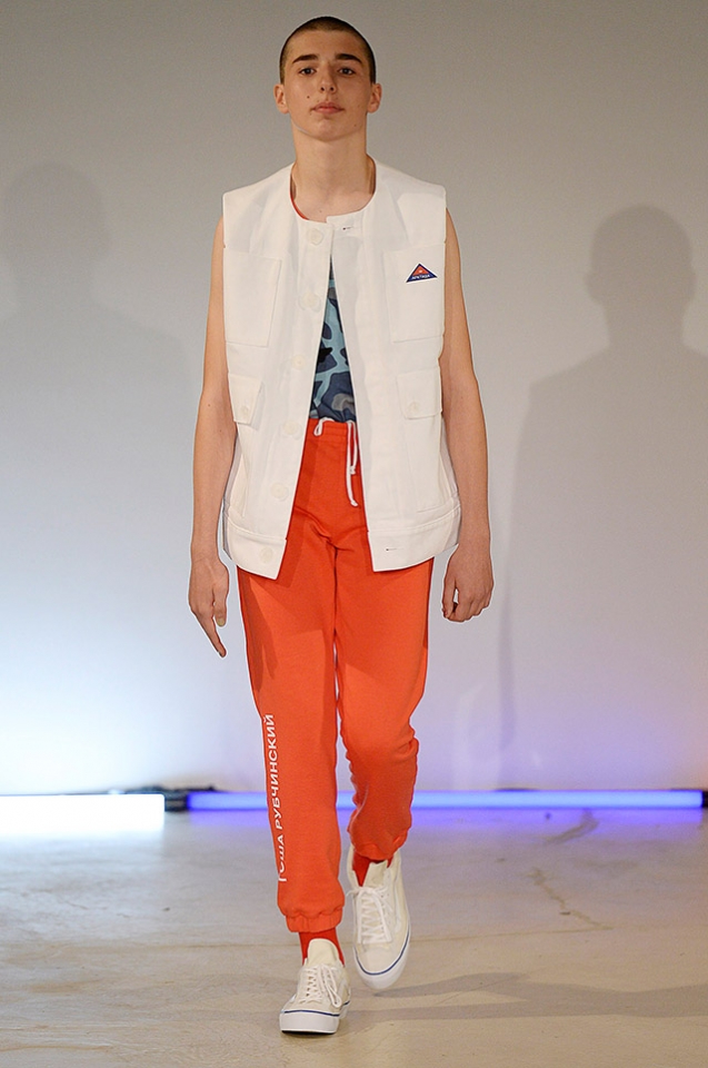 Российского дизайнера Гошу Рубчинского давно знают на Западе: ему покровительствуют Comme des Garçons, его вещи продаются в крупных зарубежных магазинах, а какое-то время назад трудно было взять в руки любой независимый модный журнал и не обнаружить там хотя бы одно упоминание о Рубчинском — как о дизайнере или фотографе. Его стиль узнаваем во всем, будь это коллекции одежды, вдохновленные скейтерами и детьми городских окраин, или фотографии с русскими церквями и мальчиками, похожими на беспризорников. В новой коллекции дизайнер снова не изменяет себе. Но хотя называется она "Арктика", яркие скейтеры Рубчинского в своих шортах, худи и кепках явно замерзли бы на морозном континенте в первые же секунды.