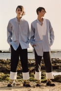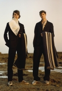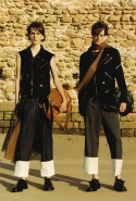 Том Браун представил вчера публике сразу две коллекции, разбив показ на две разные по стилистике части — объединяет их в одно шоу большая любовь к научной фантастике. Костюмы из первой части крайне футуристичны, и модели похожи на настоящих гостей из будущего. Сходства добавляет и тот факт, что все вещи светятся в темноте холодным металлическим блеском, а вместе с ними сияют и выкрашенные неоновым лаком ногти героев. Вторая же часть — почти слет поклонников сай-фая на Comic Con.