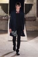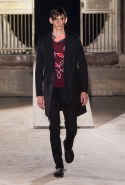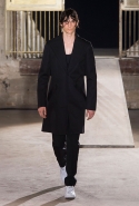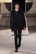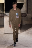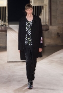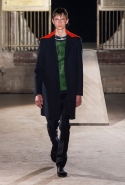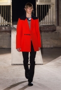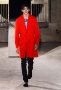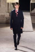 И Раф Симонс не обманул своих поклонников: то, что в женском Dior под его руководством многих раздражает, на показах Raf Simons вызывает у публики только восторг. А именно его склонность к минимализму и удивительное чувство времени, точнее, ощущение современности. Он делает совершенно удивительную одежду streetwear, похожую на униформу и практически ничего общего не имеющую со спортивным стилем, который сейчас в первую очередь и ассоциируется с так называемой модой улиц. Несколько простых цветов в диапазоне от красного до черного, немного стертые фактуры — эти рубашки и брюки словно вторят старым стенам помещения, в котором проходит показ, а квадратные нашивки и эмблемы на груди напоминают висящие на стенах квартир фотографии в рамках или яркие плакаты.
