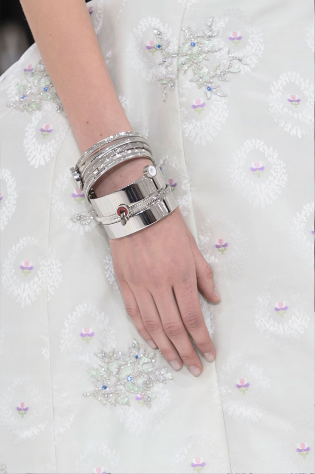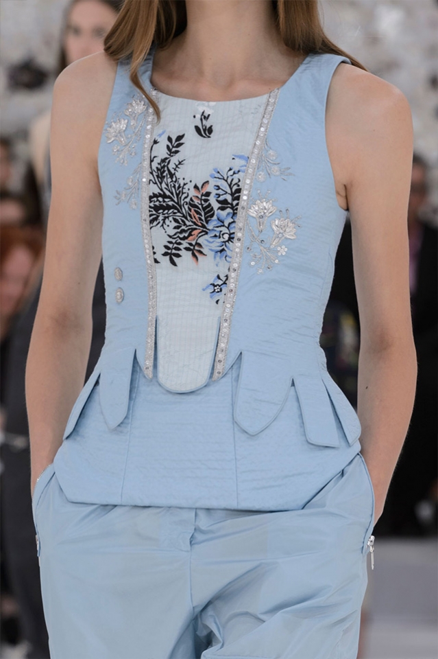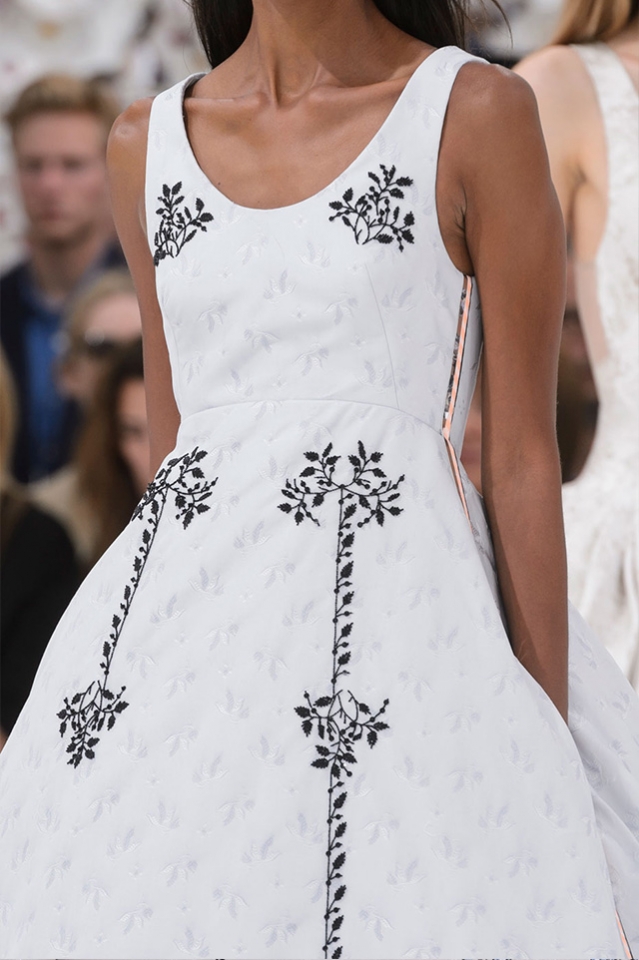 Даже в оформлении зала все, кажется, дышит спокойствием — белые стены сплошь покрыты белоснежными живыми орхидеями, красивые платья любовно вылеплены по форме круглых цветочных бутонов. Кажется, именно по такой спокойной женственности скучали многие поклонники модного дома, вконец уставшие от электрически ярких тканей, перфорованных мини и заградительных лент с надписями-предупреждениями. Гальяно с его пышной роскошью и любовью к красивым излишествам, конечно, уже не вернуть, зато элегантная женственность, пусть и крайне минималистичная, наконец приходит на смену спорным fashion-экспериментам. Платья, к тому же, как и стены, усыпаны цветами —не роскошными розами, лилиями и орхидеями, а скромными букетиками, кажется, полевых цветов. Чем не идиллия?