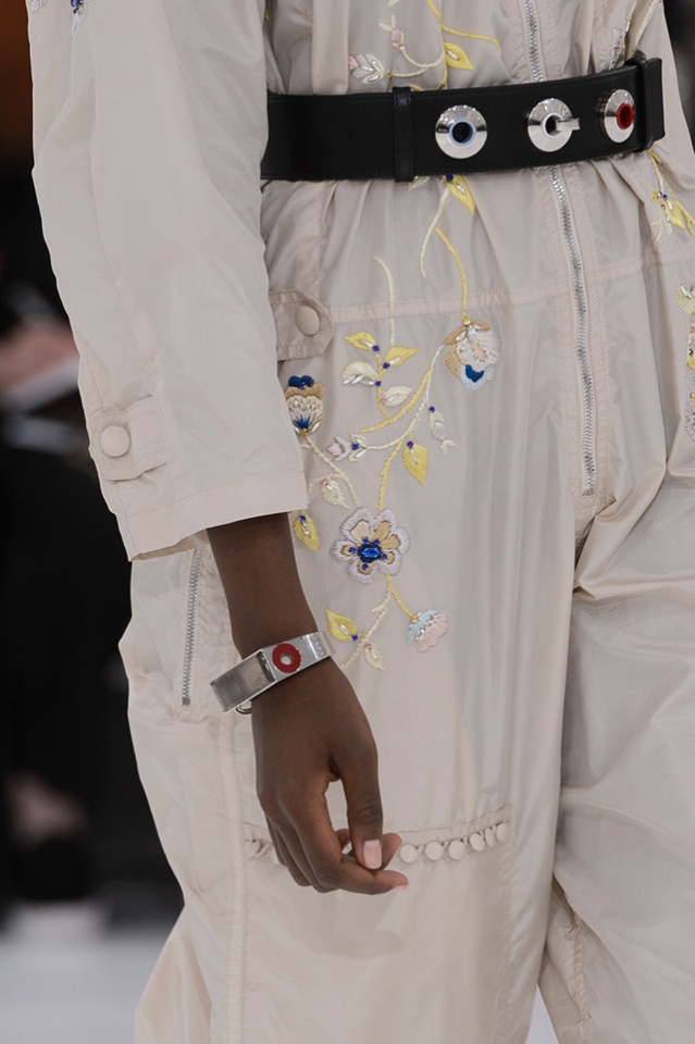 Нарушает спокойствие неожиданно врывающийся на подиум стиль милитари. Сперва — комбинезоны летчиков, которые тоже расшиты цветами, а для отвода глаз еще и украшены резными басками. Но зрителя не провести: за наивными декоративными элементами все равно чувствуется напряжение. И не зря — следом вышагивают девушки в военных мундирах и глухих пальто в пол, вспыхивает всполохами красный. И становится ясно, что без революции все-таки не обойтись, но происходит она не в мире высокой моды, а в мире беззащитных и хрупких созданий, которыми мы все оказываемся перед лицом войны. И сразу вспоминаются и красные революции, и государственные перевороты, и беглые русские аристократы, работающие в Нью-Йорке таксистами, и "Белая Гвардия" Булгакова — хотя история это совершенно интернациональная, понятная каждому. Подобные драмы найдутся в истории любого народа.