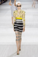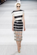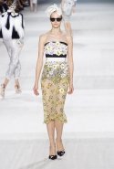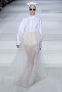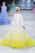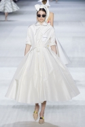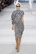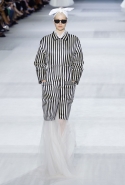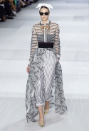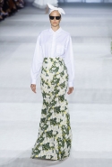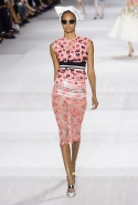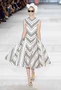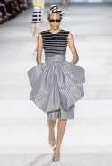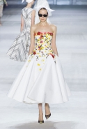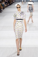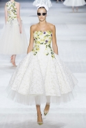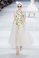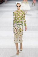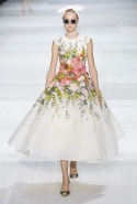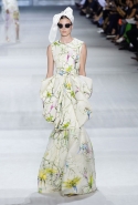 Но на этот раз свои привычные романтичные цветочные узоры дизайнер разбавляет строгой графикой. Сначала это тонкая полоска, исчерчивающая платья с пышными юбками в духе 50-х годов, потом — однородные блоки черного цвета, играющие на контрасте с окружающими их воздушными вышивками и аппликациями. Но и прежние воздушные девушки, любимицы Джамбаттисты Валли, все еще здесь и, конечно, полностью в цветах всех возможных видов. А к концу показа они и сами превращаются в огромные бутоны.