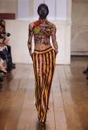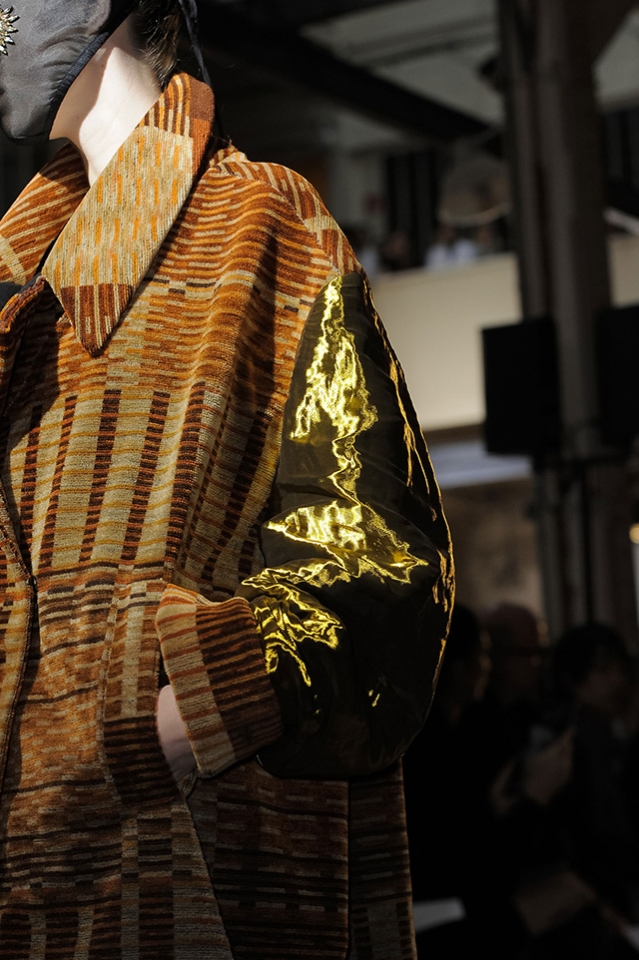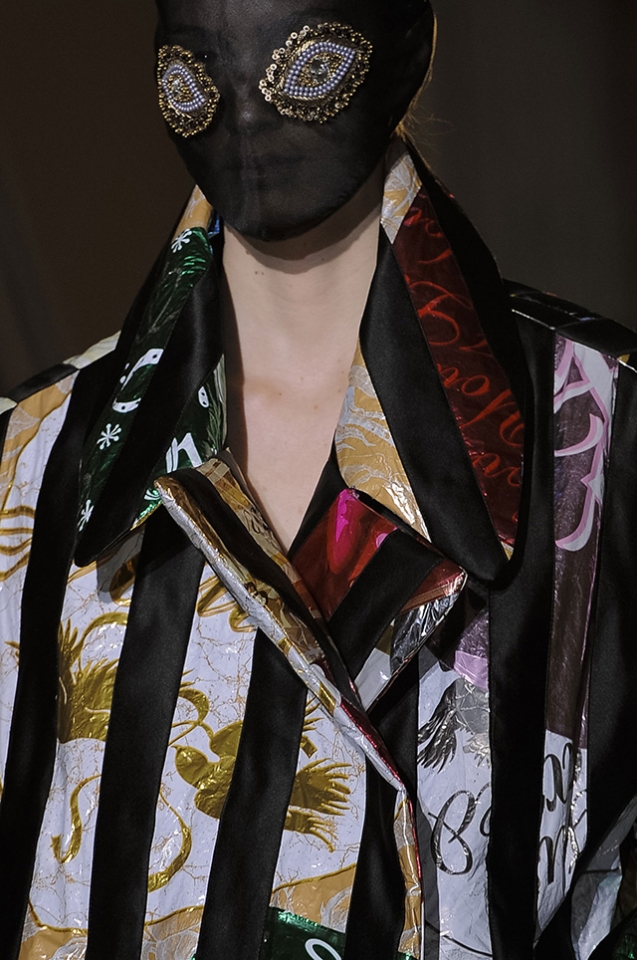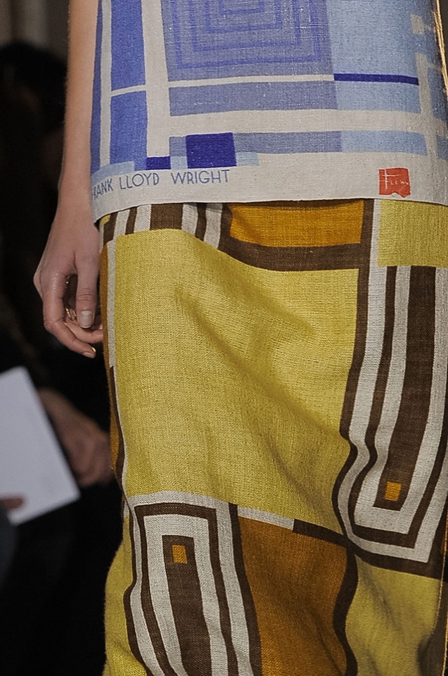 Искусство становится одеждой, одежда становится искусством — грань очень тонка, если вообще существует. Работы Фрэнка Ллойда Райта, который кроме архитектуры занимался и витражами, превращаются в собранные из пестрых панелей платья. То же и с принтами Рауля Дафи, дизайнера тканей начала XX века. Топы, имитирующие олд-скульные татуировки тату-мастера Нормана Кита Коллинза, местами удивительно напоминают работы Роя Лихтенштейна, а брюки похожи на коллажи дадаистов, не хватает только кричащего Dada Siegt! поверх.