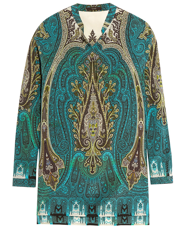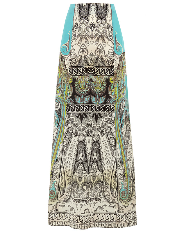 Всего в коллекции, созданной Etro эксклюзивно для Net-a-Porter, семь предметов: макси-юбка, платье в пол, рубашки и туники. Перепутать эти вещи с творениями любого другого модного дома невозможно: все они усыпаны фирменными для итальянского дома турецкими огурцами и расписаны другими этническими узорами. А из-за голубого цвета, который служит фоном для всех рисунков и основным цветом для всей капсулы, вещи становятся и вовсе идеальными для наступающего жаркого лета. Яркие краски, свободные силуэты, дух странствий — разве летом нужно что-то еще?