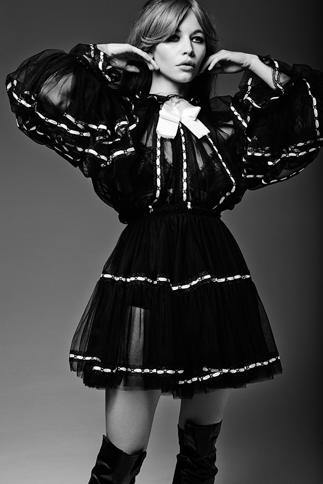 Роль Брижит Бардо — ответственное задание для любой актрисы, ведь сыграть икону своего времени во всем ее обаянии и великолепии отнюдь не легко. Помочь Светлане должны были наряды Maison Bohemique, специально для съемки подобранные дизайнерами марки: короткие платья силуэта baby doll, лаковая куртка и жакет из перьев с эффектом деграде. А завершающими штрихами стали аксессуары: косынки, широкополые шляпы и большие темные очки, которые обожала Брижит Бардо.