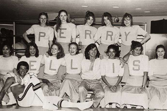 Перри Эллис с моделями и защитником Принстонского университета, осень 1978 года
