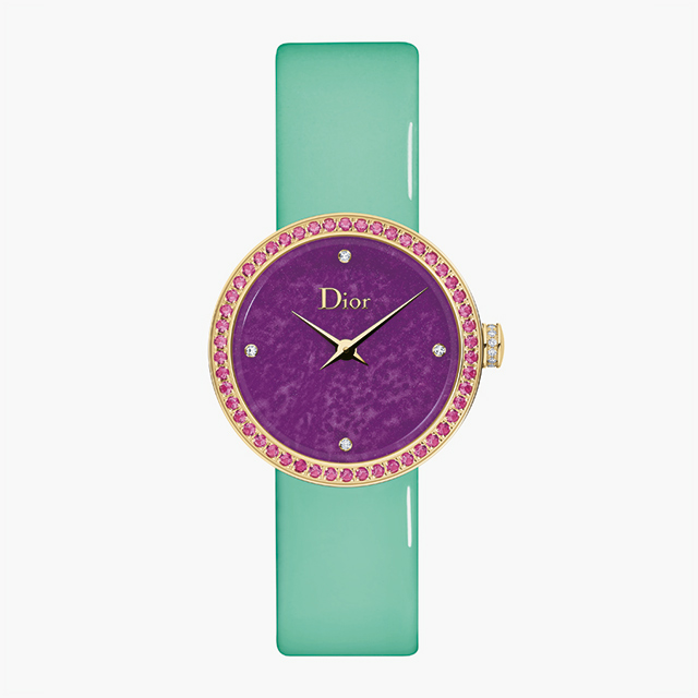 В продолжение темы, посвященной детству Кристиана Диора, Виктуар де Кастеллан представила и коллекцию часов. 9 моделей в белом, розовом или желтом золоте, с безелем в россыпи желтых сапфиров, с бриллиантами, бирюзовыми циферблатами, нежно-розовыми лаковыми ремешками и бриллиантовыми пряжками.