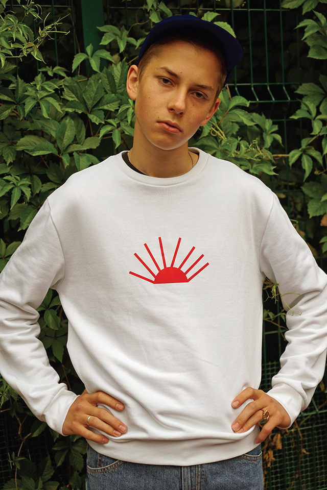 В новой коллекции Рубчинский развивает главную идею своего бренда — передать дух эпохи перестройки и воспроизвести стиль постсоветской молодежи. Отсюда вареные джинсы, заправленные в высокие носки, футболки, толстовки и бейсболки с контрастными принтами в виде солнца, оленя, пирамид, ледокола и пингвинов — прямыми «цитатами» работ Новикова из серии «Горизонты».
