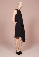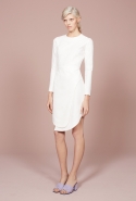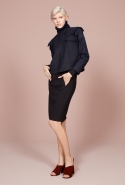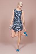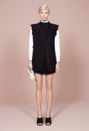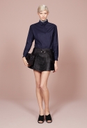 В списке приятных неожиданностей на этот раз неожиданный крой — у платьев с нашитыми крупными "лепестками", похожими на крылья насекомого. Асимметрия — изгибается и волной уходит в сторону даже линия пуговиц на рубашке. Материалы — один только взгляд на ярко-оранжевые кожаные и пальто, красный костюм с юбкой и объемной курткой или свитер со вставками полосатого меха уже согревает, хотя на улице пока декабрь. И, конечно, принты — от мелких белых крапинок на черном костюме до будто перепачканного неаккуратными мазками широкой кисти жакета.