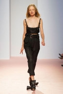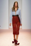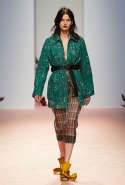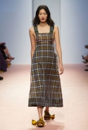 Во время показов прошлого осеннего сезона на подиумах безраздельно властвовал гранж: клетка, которая в течение нескольких сезонов никак не желала уходить с подиумов, вновь возродилась в виде рисунка с фланелевых рубашек, рваные колготки снова подружились с кожаными юбками и изодранными джинсами. С тех пор утекло немало воды, и в моду снова вернулась девичья нежность без рок-н-ролльных девизов. И гранж в весенне-летней коллекции №21 выглядит, конечно, совершенно иначе, чем три сезона назад. За основу взята та самая клетчатая рубашка, из которой Марк Джейкобс в 90-х своей легкой рукой и сотворил гранж как модное движение. Эта рубашка, снятая явно с мужского плеча, становится у №21 базой для многочисленных платьев, как стандартного рубашечного кроя, так и типично итальянского — женственного, с подчеркнутыми грудью и талией.