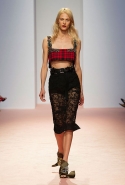 Но дополняют этот гранжевый элемент детали совершенно девичьи. Например, кружево разных цветов, беззастенчиво обнажающее тела моделей, которые до этого успешно скрывали рубашки. Или полупрозрачные пудрового цвета ткани — сшитые из них платья совершенно кукольных силуэтов порой, словно шутки ради, покрывает та самая легко узнаваемая клетка.