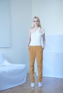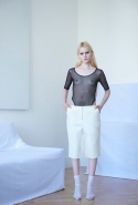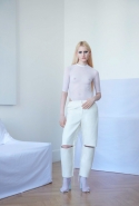 Коллекция получилась такой же чистой и минималистичной, лишенной любых броских, кричащих деталей — самой большой вольностью, которую позволяет себе команда марки, становятся простые горизонтальные разрезы на коленях. Украинский дизайнер Светлана Бевза ограничивается всего несколькими красками: белой, насыщенно-синей, голубой, светло-коричневой и приглушенно-розовой. Изредка мелькает и черный, но не глухой и монолитный, а обязательно полупрозрачный, открывающий простор воображению. И только в аксессуарах — аккуратных прозрачных сапожках на плоском ходу.