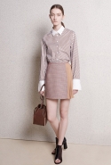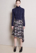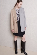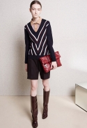 Графика, важнейшая примета коллекции, находит продолжение и в еще одной детали: почти мужском шерстяном пальто. Юбки с высокой талией и длиной чуть ниже колен подчеркивают отсыл к семидесятым, так же как и укороченные свитера. Одним словом, никакой скуки. Если бы все рабочие дни в офисах были такими же, как вообразил Гийом Анри!