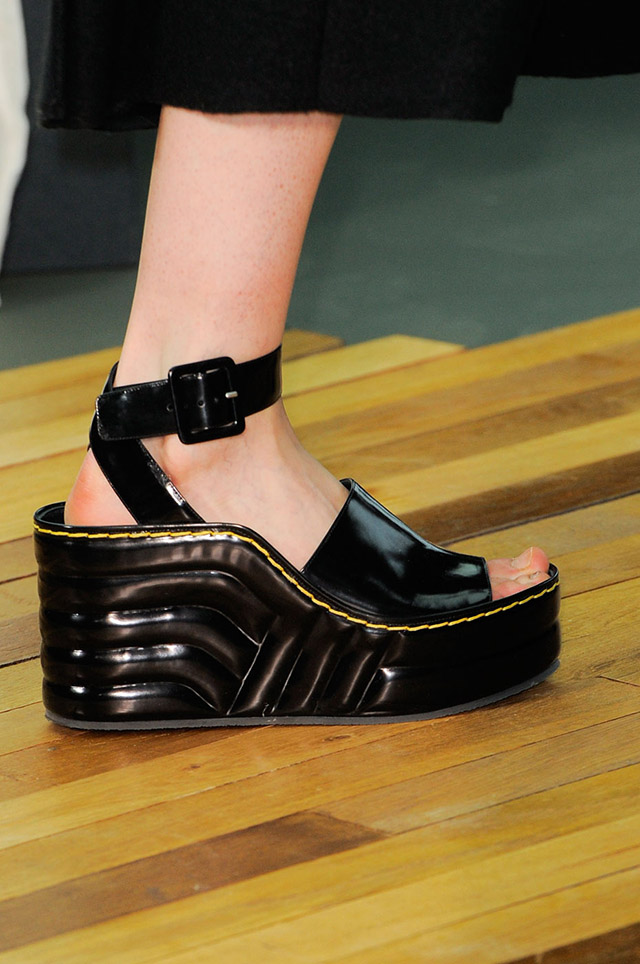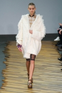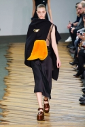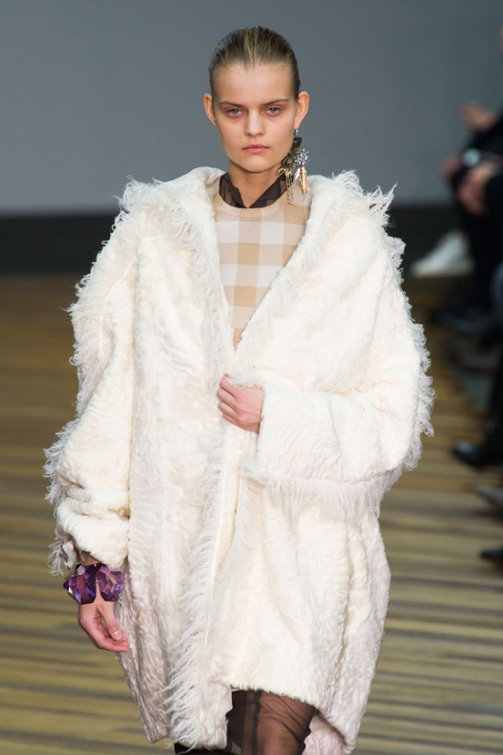 Не обходится, впрочем, и без quirky-элементов — но куда сейчас без них? Без меховых поясов, ярко-желтых пушистых муфт, контрастных цветов длинных волосков, которыми обрастают шубы, и нашитых на платья крупных ярких камешков.