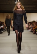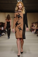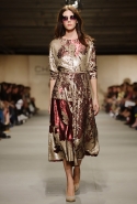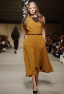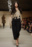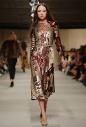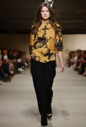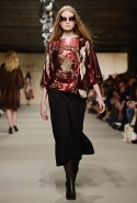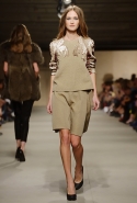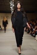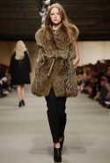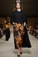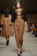 В этот раз в поисках вдохновения Игорь Чапурин обращается к культуре четырех стран Северной Европы: Швеции, Норвегии, Дании и Финляндии. Их сдержанная величественная природа, всеохватывающая и суровая мифология, легенды о древних северных богах нашли отражение в осенне-зимней коллекции Chapurin, получившей название «Саги». Это сплошь элегантные вещи темных насыщенных цветов: здесь и природные оттенки коричневого, и горчичный, и густой баклажановый, черный, который не кажется скучным и монолитным благодаря различию текстур и тканей. Что кроме цветовой гаммы объединяет эти комбинезоны, вполне классические, несмотря на асимметрию, пальто, платья, укороченные брюки с древней культурой Скандинавии? Например, мех, согревающий девушек Chapurin так же, как когда-то он грел суровых мужчин-викингов, — детали и целые предметы из меха койота, бобра и норки. И, конечно, принты и вышивки, напоминающие не то оленьи рога, не то искаженные силуэты летучих мышей, — в них есть особая темная, мрачная романтика, отличающая новую коллекцию Игоря Чапурина.