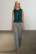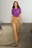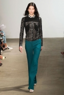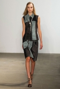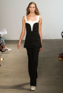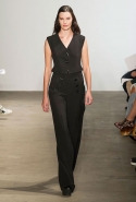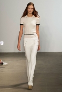 В чем именно кроется секрет Дерека Лэма, сказать сложно. В нарочито контрастных и бросающихся в глаза белых швах, обводящих каждую деталь каждой вещи? В широкой полоске? В крупных золотых и белых пуговицах? В вещах, собранных, как мозаика, из кусков ткани разного цвета? В оптических принтах из маленьких черных овалов? Вряд ли: эти детали только добавляют очарования всей коллекции, но ни одну из них нельзя назвать образующей. Поэтому мы, пожалуй, оставим попытки разгадать тайну Derek Lam и просто еще раз пересмотрим показ, заглядываясь на прекрасный белый комбинезон и мечтая о следующем лете.
