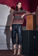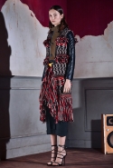 В коллекции pre-fall 2015 Dsquared² смешали фольклор и элегантную сексуальность. Сдержанные "зимние" цвета — от бордового до черного — разбавляют этнические мотивы, позаимствованные из двух весьма живописных культур — цыганской и русской. Удлиненная юбка с принтами и кожаной вставкой на высокой талии поигрывает бахромой, а по короткому черному платью дизайнеры пустили цветочный орнамент, почти как на русских матрешках — надо думать, политическая шумиха вокруг России не прошла даром для мира моды.