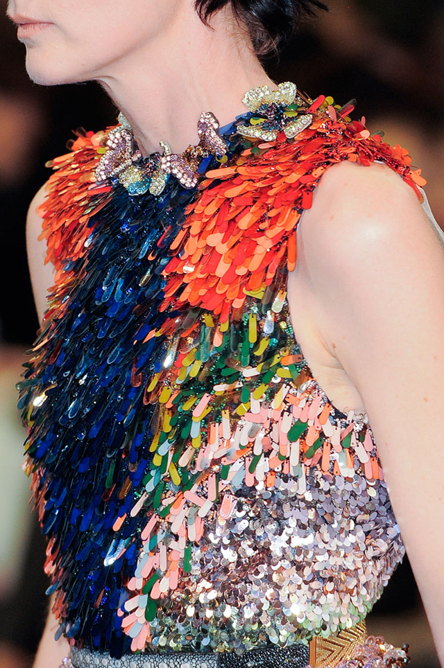 Поэтому дело не ограничилось только ожидаемыми нарядными платьями, в коллекции нашлось место и брючным костюмам, отдаленно напоминающим парадную военную форму, и традиционно мужского кроя брюкам и жакетам. Ну а платьев, блуз и юбок, разумеется, было множество и самых разных: со смешанными принтами из бабочек и леопарда, с геометричными цветными вставками и линиями, вдохновленными движением Баухаус, с расплывчатыми абстрактными рисунками, с усыпанными пайетками лифами.