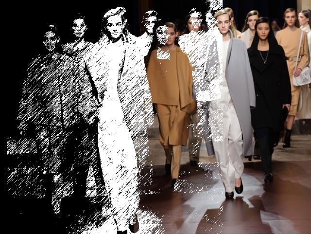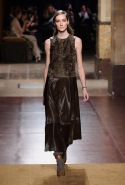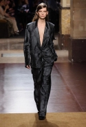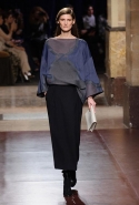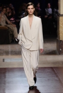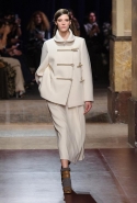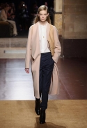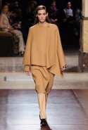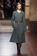 Превратив в прошлом сезоне подиум в настоящие джунгли, а вещи расписав цветами будто бы с картин Анри Руссо, в новом сезоне Кристоф Лемер отказался и от цветов, и от ярких красок совсем, за исключением пары-тройки выходов с похожим растительным орнаментом. Остальное составляют темные и очень спокойные, ненавязчивые цвета, уютные длинные юбки, свободные брючные костюмы и самые простые плащи. Именно по этим простоте и расслабленности мы и скучали целый месяц: принты, вышивки и красочные блоки, разноцветные шубы, супермаркет Chanel, в конце концов. На коллекции Hermes глаз буквально отдыхает, хотя с невольной настороженностью все равно ждешь, что вот-вот откуда-нибудь все-таки выглянет очередная неоновая лилия. Но нет, свой курс Кристоф Лемер держит уверенно.