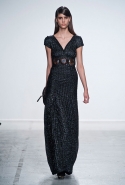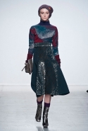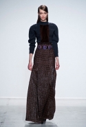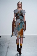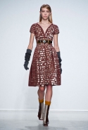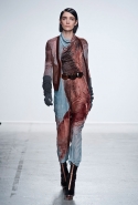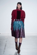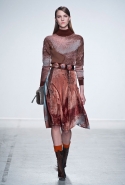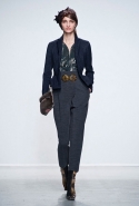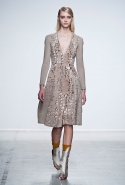 Эксцентричность и театральность всегда были одними из главных примет Джона Гальяно как модного дизайнера. То же, разумеется, ждало и марки, которыми он занимался. Все свои накопленные за 20 с лишним лет работы с Джоном Гальяно знания Билл Гейтен вложил в первые коллекции, постепенно уходя от этого и двигаясь в новом, собственном направлении. Например, весенне-летняя 2014 года была уже просто яркой (в прямом смысле этого слова) и запоминающейся, то есть эксцентричной, но лишенной намеков на театральность. Осенне-зимний показ, кажется, стал последним шагом в пути от стиля Гальяно. Простые и хорошо знакомые силуэты без лишних умствований, объемная, но не крупная отделка: блестящие чешуйки на костюмах, покрытые цветными пайетками текучие юбки, узорчатые платья, красные печати змеиного принта на жакетах. Получилась крепкая, а местами даже и очень красивая коллекция.